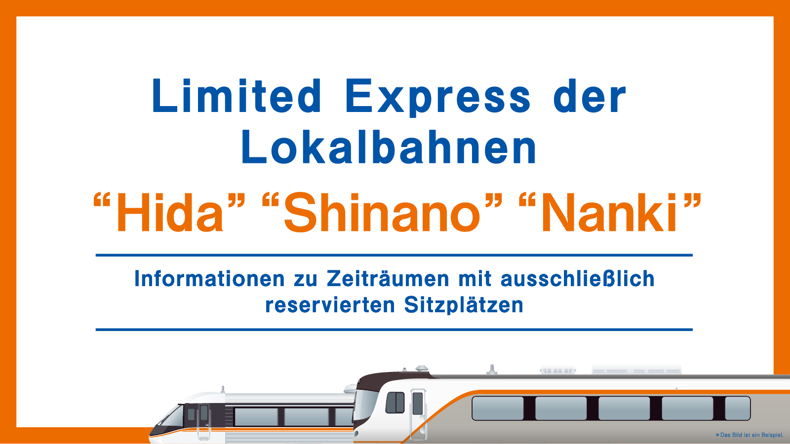 · Reservierungen können auch über die Online-Reservierungsdienste (JR-WEST ONLINE TRAIN RESERVATION, JR-EAST Train Reservation, JR-KYUSHU Train Reservation) der jeweiligen JR Unternehmen vorgenommen werden.