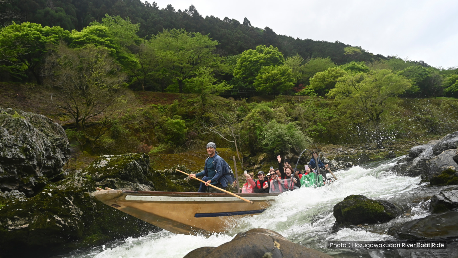 Transition from calm fields to rushing rapids. Experience the power of the Hozugawa River before a well-deserved feast of local Tanba delicacies.